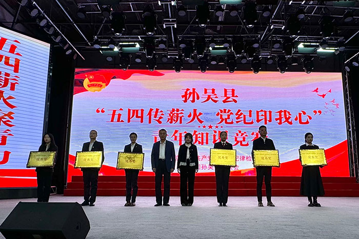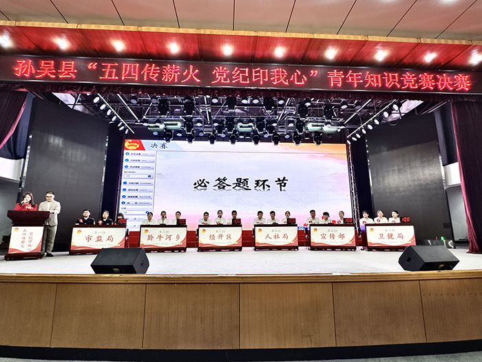 为深入贯彻党中央决策部署,锲而不舍落实中央八项规定精神,有效发挥“以赛促学”效能,不断提升青年干部的政治素养和业务能力。4月29日,由中共孙吴县纪律检查委员会、共青团孙吴县委员会共同主办的孙吴县“五四传薪火 党纪印我心”青年知识竞赛决赛在工人文化宫举行。县委副书记赵锐、县人大常委会副主任王清林、县政府副县长房红岩、县政协副主席孙成及相关单位负责同志出席活动。